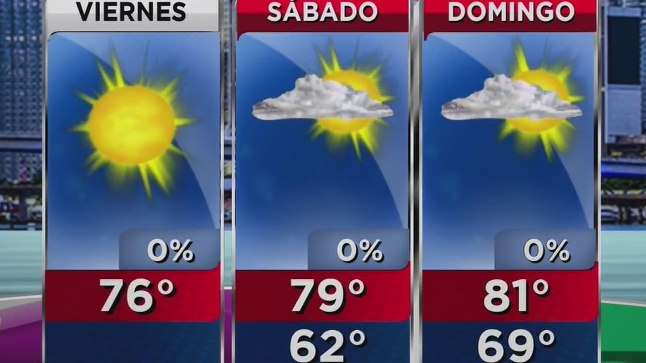 Aunque sube un poco la temperatura en Miami, se mantiene la tendencia de días fríos y soleados. La máxima hoy será de 76 grados, sin probabilidades de lluvia.