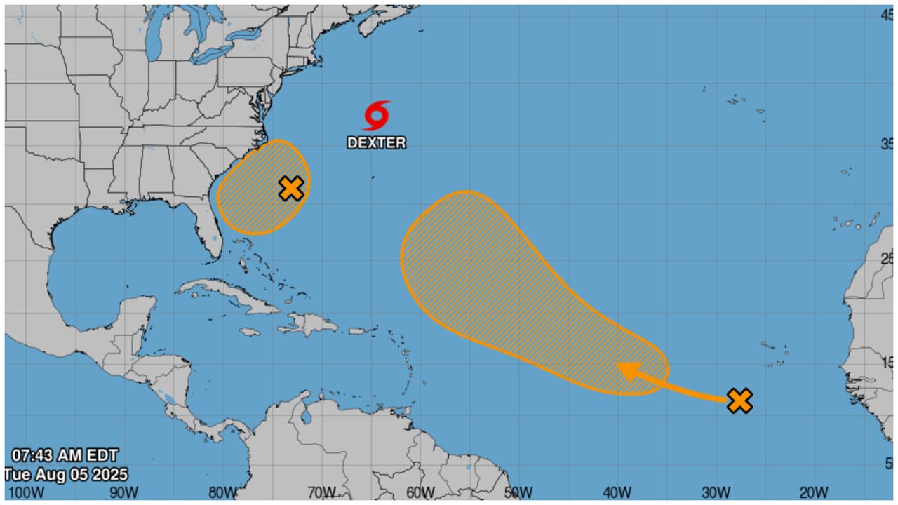 El Centro Nacional de Huracanes se encuentra vigilando dos zonas de mal tiempo con posibilidades de desarrollo tropical. Una de estas, frente a las costas de Florida pudiera afectar el estado.