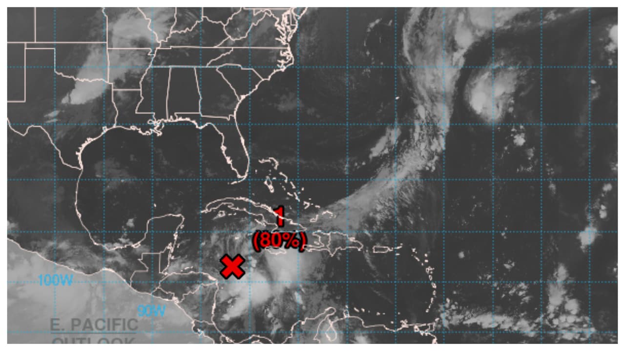 El Centro Nacional de Huracanes está dando una posibilidad de desarrollo de un 80% a una zona de mal tiempo que se encuentra en el Caribe. El sistema continuará moviéndose en dirección norte para cruzar al este del Golfo de México. Podría afectar el oeste de Cuba y partes de Florida como un huracán.