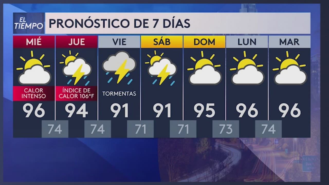 Debido a la alta humedad, los habitantes de Carolina del Norte sentirán las temperaturas entre los 102 y 109 grados. Se esperan lluvias y algunas tormentas el miércoles.