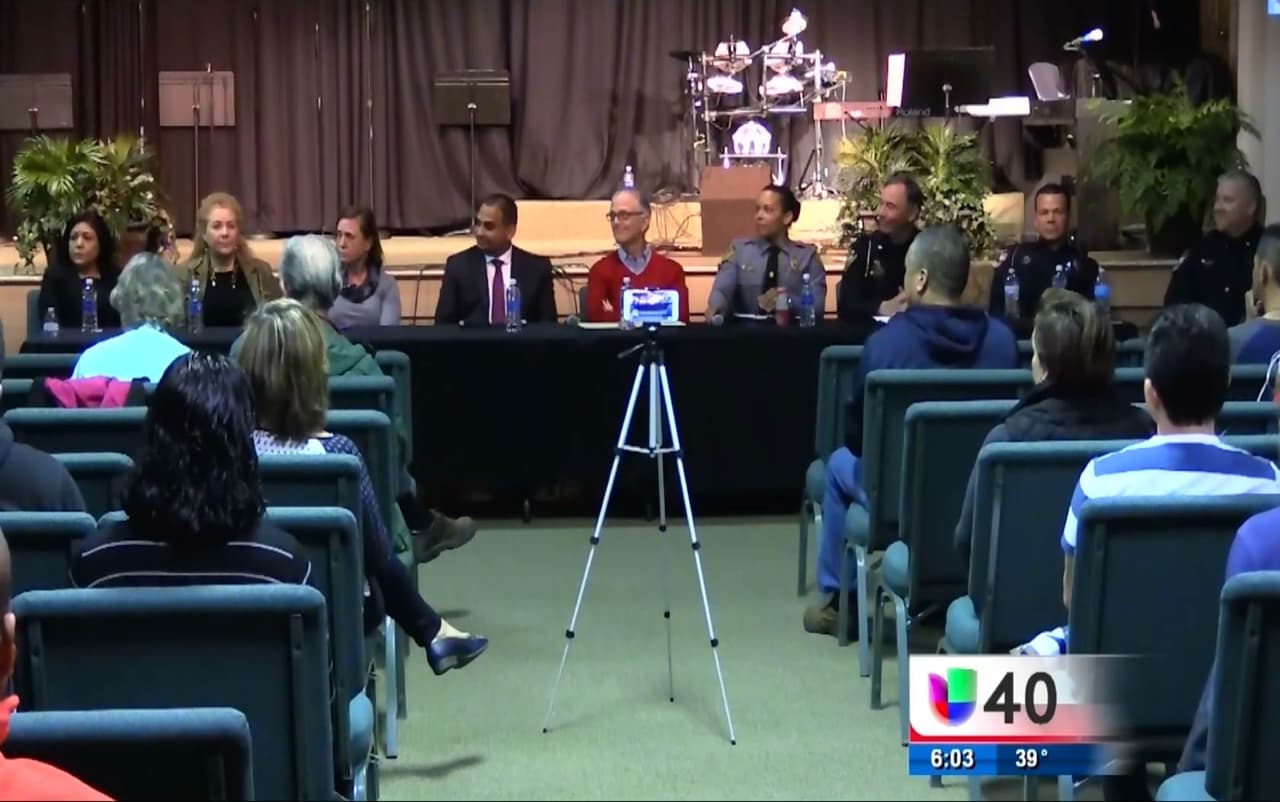 Representantes de la policía de Mauriceville, Apex y Cary asistieron a un foro comunitario para hablar de los recientes retenes de seguridad en la zona y las acciones de agentes de inmigración.