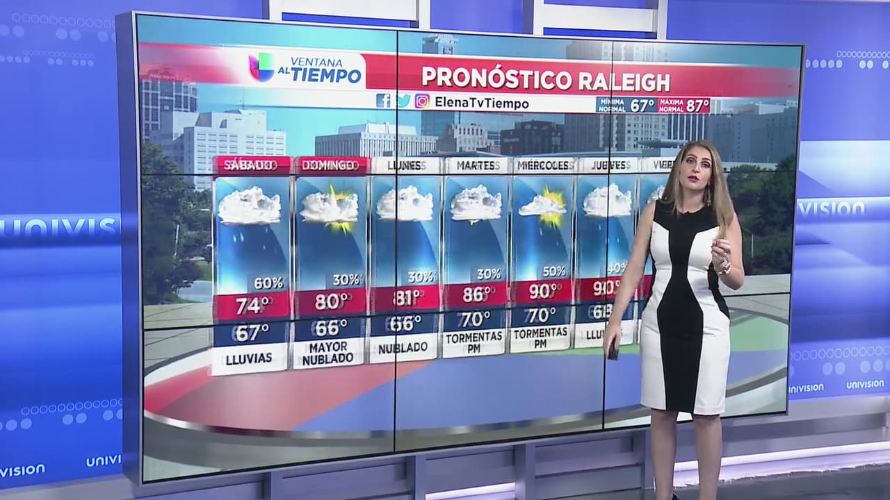 El 24 de agosto se pronostican temperaturas entre los 70 grados con lluvias y para el 25 de agosto las temperaturas suben en el rango de los 80 grados, pero la lluvia acompañará parte de la tarde.