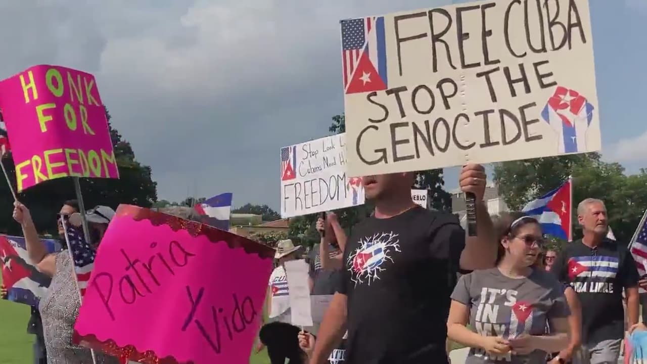 Con banderas en mano y gritando “Viva Cuba libre”, varias personas se reunieron en el centro de la ciudad de Raleigh para alzar su voz y apoyar a la isla.