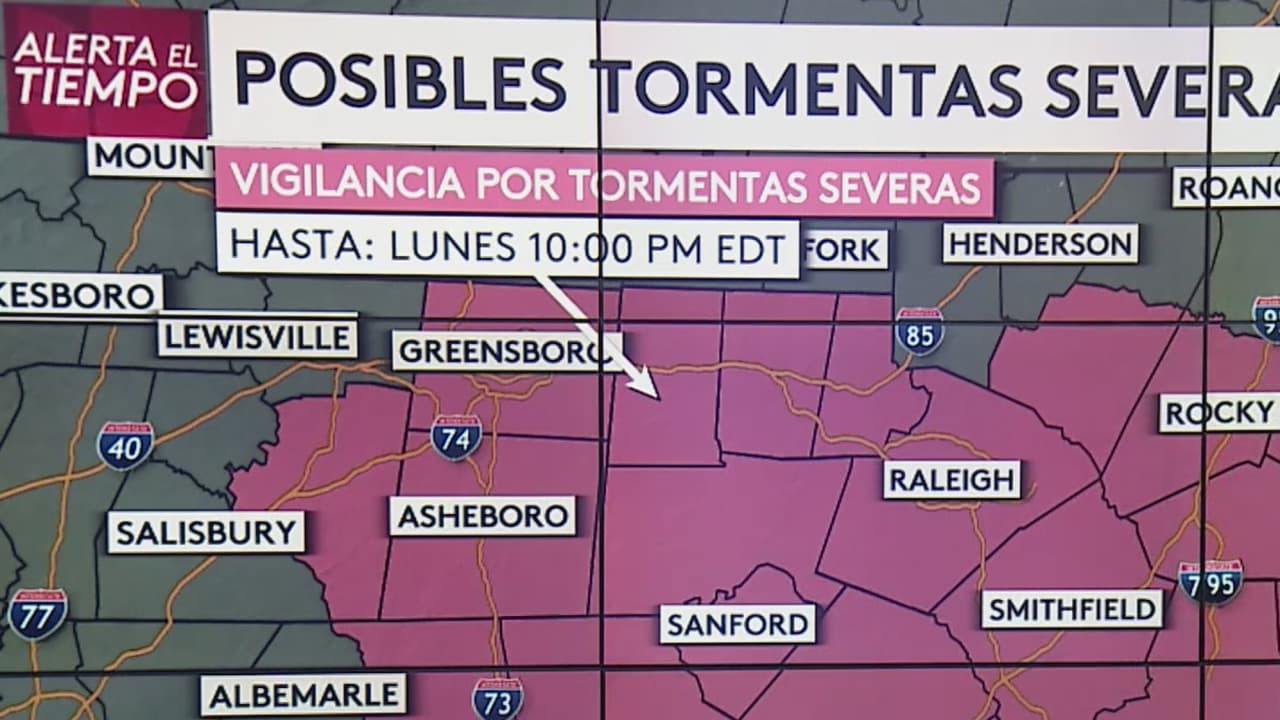 El centro y este de Carolina del Norte están bajo un riesgo bajo de tiempo severo (nivel 2 de 5). Según el Centro de Predicción de Tormentas, las ráfagas de viento dañinas serán la principal preocupación, pero también será posible que caiga granizo de gran tamaño, relámpagos y fuertes aguaceros, informó el Centro de Operaciones de Emergencia (NCEM) en un comunicado.