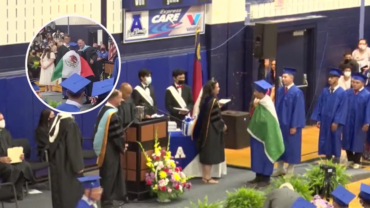 Ever López, estudiante de Asheboro High School, expresó en entrevista a Univision 40 que la directora de la institución le dijo: 'No puedes usar la bandera'. Una vez finalizada la ceremonia de graduación, la familia del joven denunció que la administración de la escuela se negó a entregarle su diploma de secundaria.