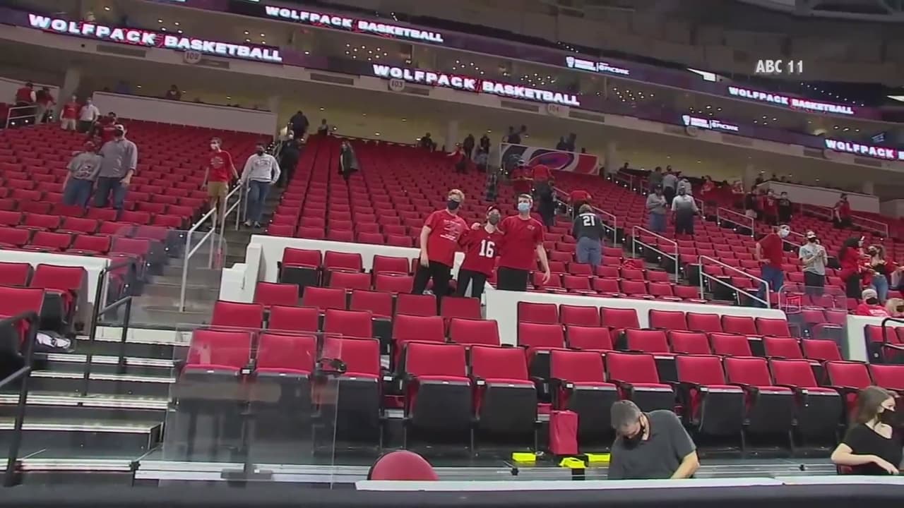 Estudiantes y fanáticos del equipo de baloncesto de NC State regresaron al PNC Arena luego de que el gobernador Roy Cooper permitiera la reapertura de los estadios deportivos a una capacidad reducida.