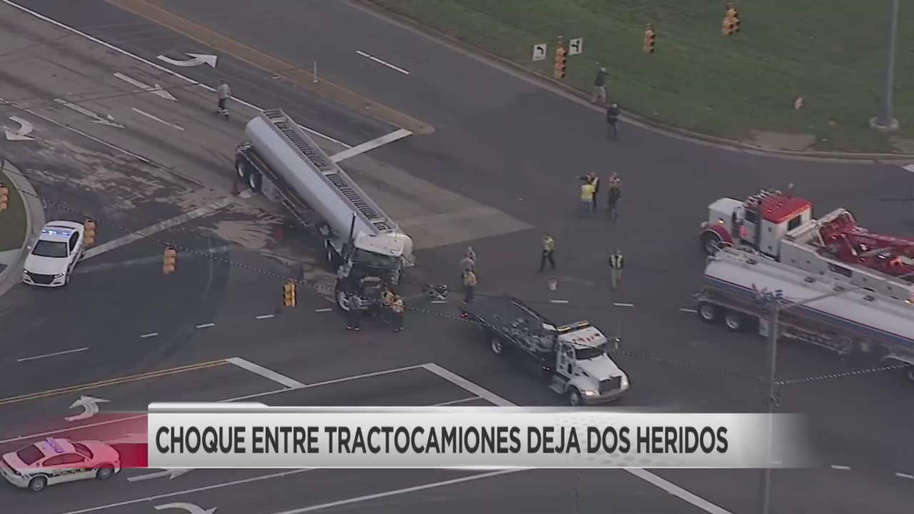 Dos personas resultan heridas tras el choque de dos tractocamiones que transportaban gasolina.