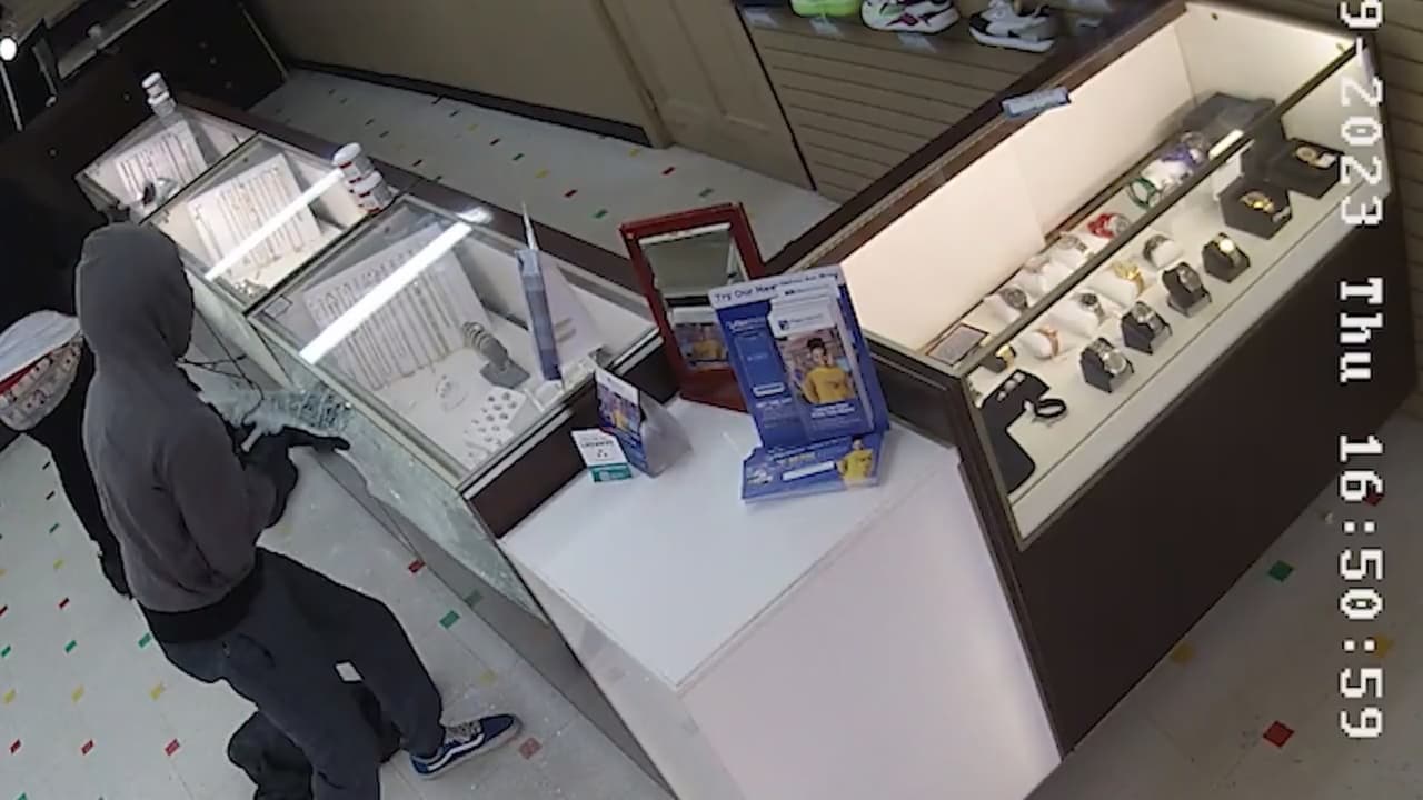 La policía busca a sospechosos que robaron joyas con un valor de más de 38 mil dólares. Utilizaron mazos para romper las vitrinas y llevarse los artículos.