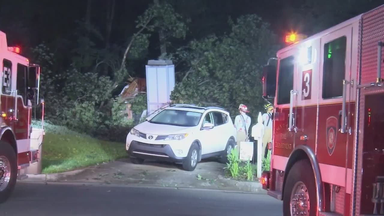 Un gran árbol cayó contra una vivienda de Cary con dos personas adentro. La casa está en Alicary Court, que está en la avenida Seabrook, justo al norte de la US 1. Una mujer, su prima y un perro estaban adentro cuando cayó el árbol. Una persona fue llevada al hospital.