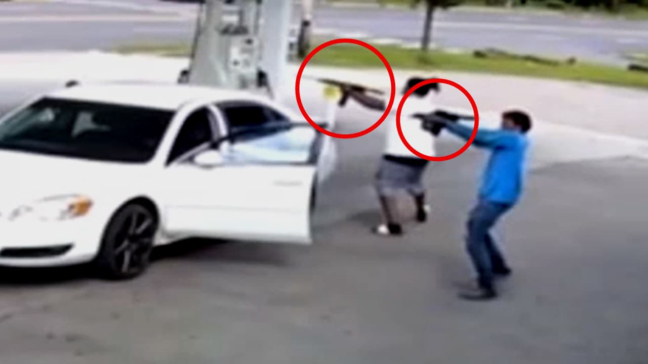 Cámara de seguridad capta balacera a plena luz del día en una gasolinera de Henderson