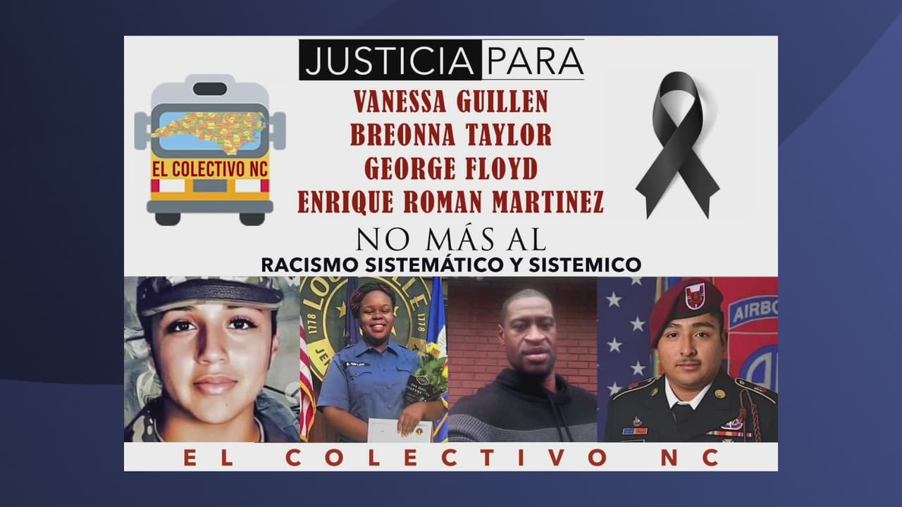 El sábado 25 de julio el Colectivo NC, que es la unión de varias organizaciones proinmigrantes en el estado, realizará una caravana en contra del racismo, y además exigirán justicia por los homicidios de los soldados Enrique Román Martínez y Vanessa Guillén. La actividad será a las 12 pm en la iglesia Hope Cafe Church en Raleigh, Carolina del Norte.