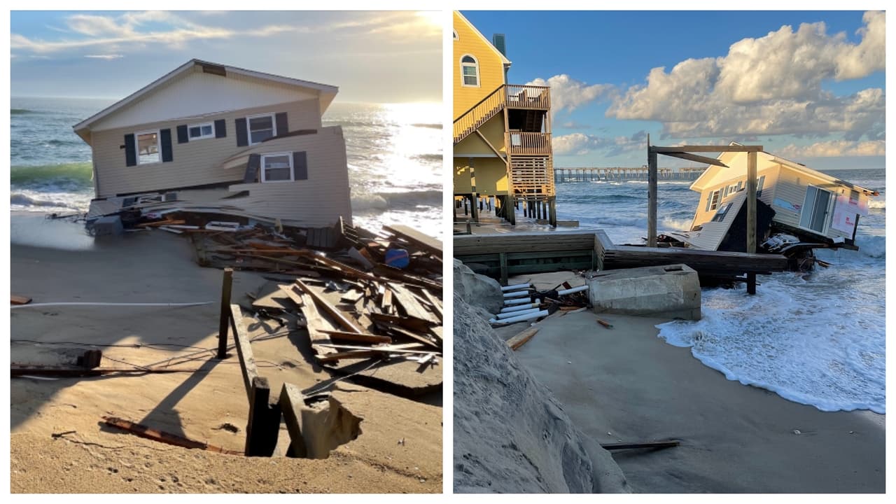Casa se desploma en el mar y sus escombros flotan por la costa de Carolina del Norte