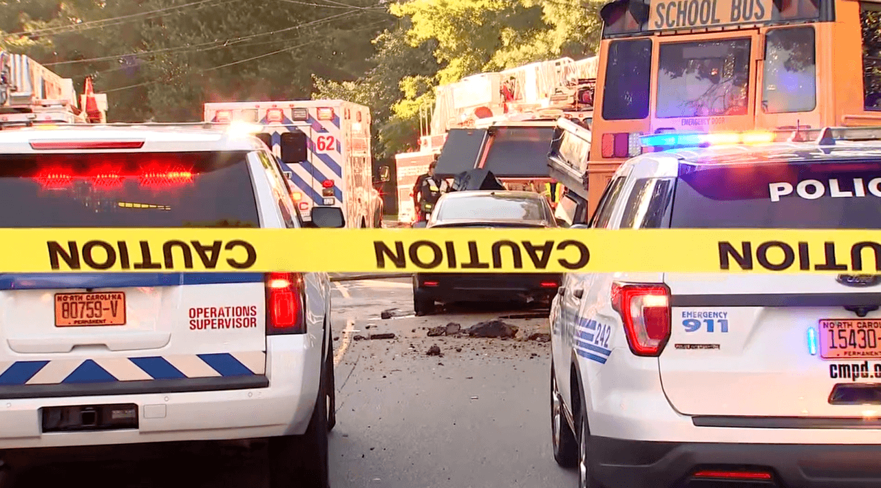El autobús escolar que tenía 15 estudiantes a bordo se dirigía a South Mecklenburg High School cuando se registró el choque en Sharonbrook Drive alrededor de las 6:30 a.m.