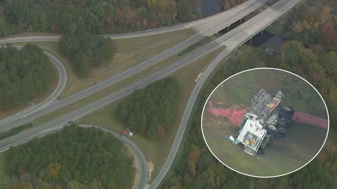 Imágenes aéreas de la autopista US-64 en Rocky Mount tras volcarse camión con una "carga peligrosa"