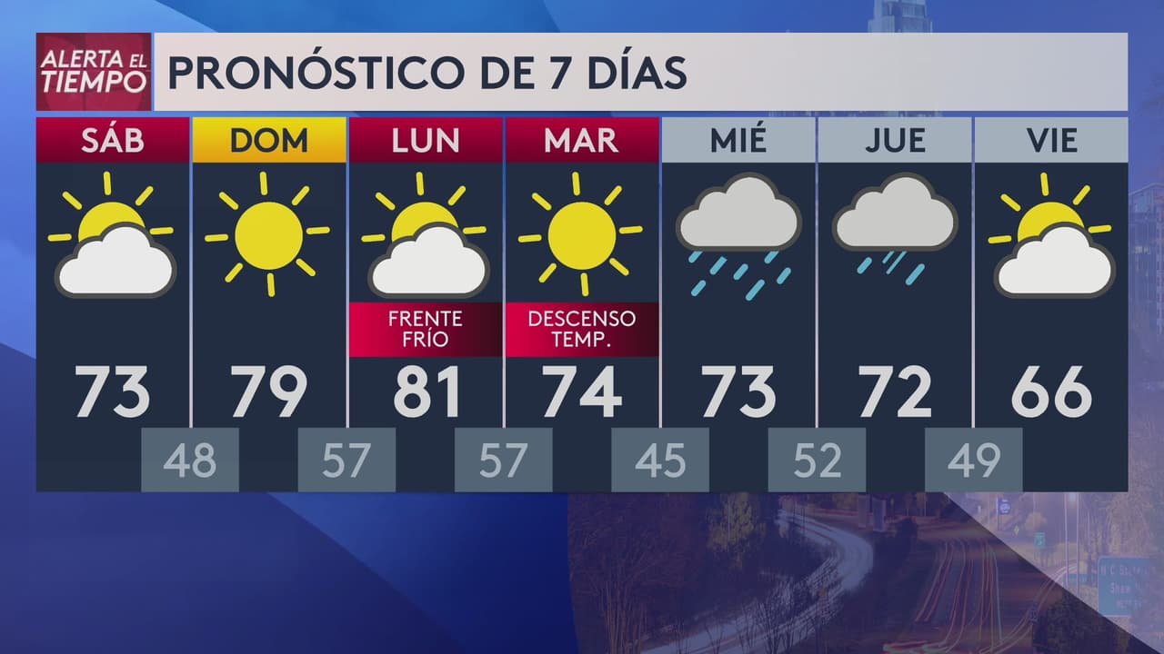Las temperaturas máximas llegarán al rango de los bajos 70 grados, con algunos nublados ligeros. Aproveche el clima para realizar actividades en el exterior.