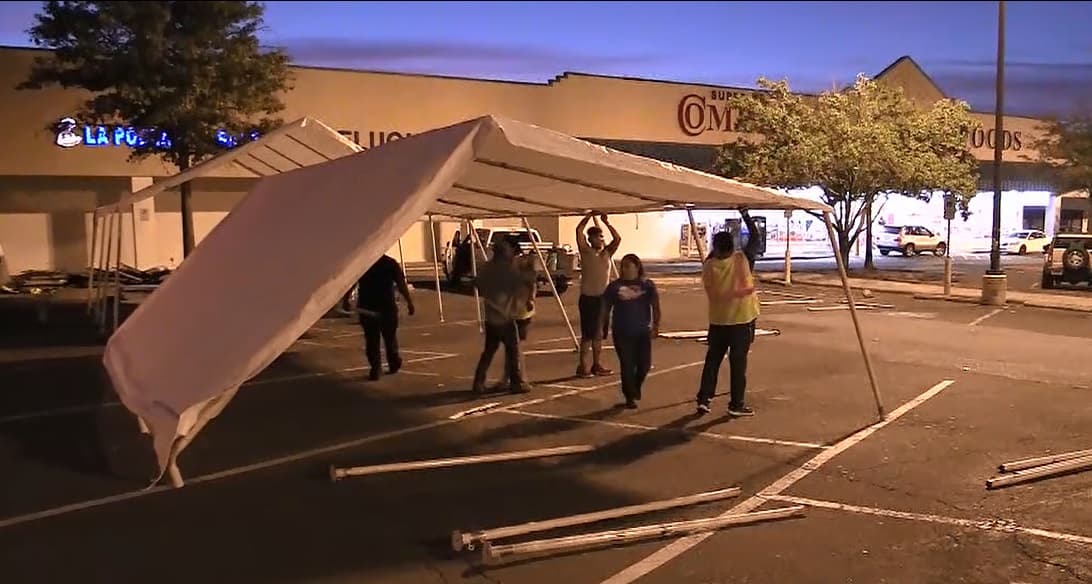 Ocho carpas se instalaron a las afueras de un supermercado como parte de un evento que busca reunir recursos que se dirigirán a estados como Puebla, Morelos y Oaxaca.