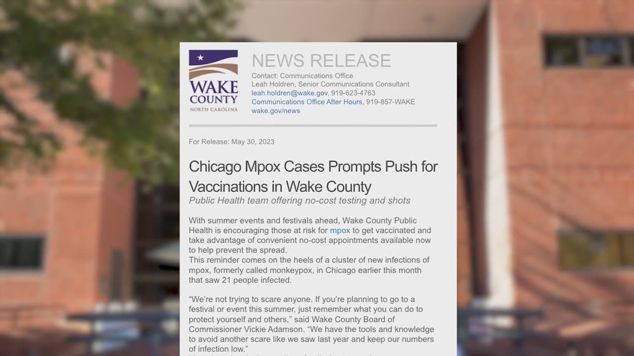 El Departamento de Salud Pública del Condado de Wake instó a la comunidad a no bajar la guardia y vacunarse contra la viruela símica. Esta alerta surge luego de que se detectaron más casos de esta enfermedad en Chicago.