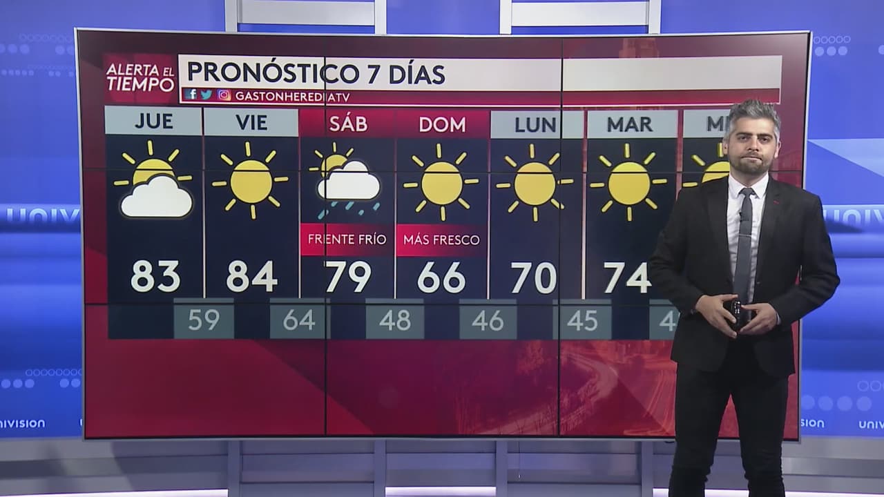 Not assignedEste día se esperan nublados ligeros, con condiciones estables y temperaturas de 83 grados. Para el fin de semana se avecina un frente frío.