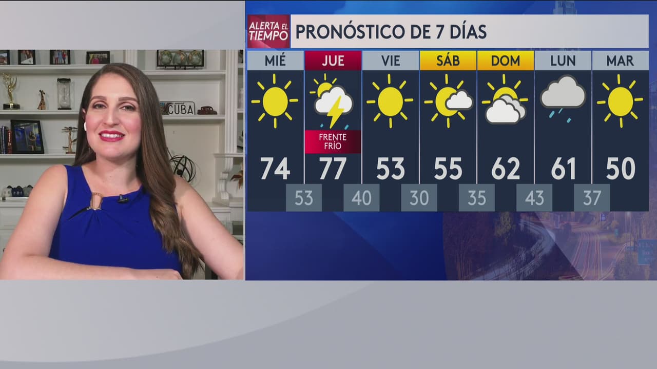 Este miércoles, las temperaturas máximas llegarán a los 74 grados con cielos mayormente despejados. El jueves se espera la llegada de un frente frío.
