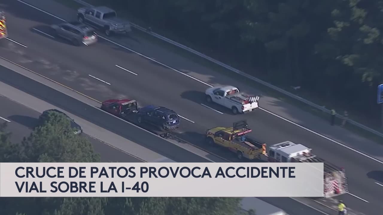 De acuerdo con la policía de Durham, el accidente ocurrió cuando los vehículos desaceleraron y algunos pararon cuando varios patos cruzaban la calle. 5 vehículos y un tractocamión estuvieron involucrados en el accidente y una persona fue trasladada a un hospital con heridas menores.