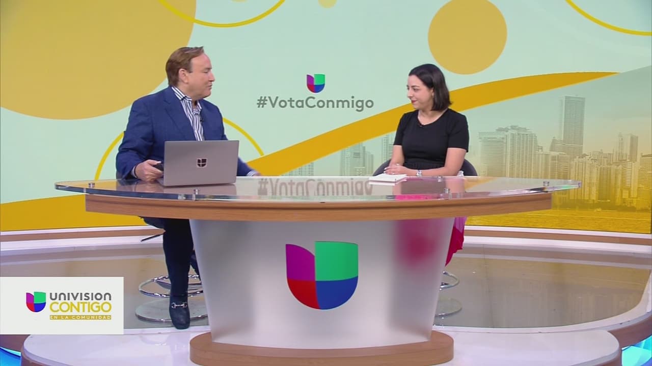 Maydee Martínez, coordinadora de servicios al votante de La Liga de Mujeres Votantes del condado Miami-Dade, hace un desgloce de las seis enmiendas que aparecen en la boleta electoral de Florida en 2024.
