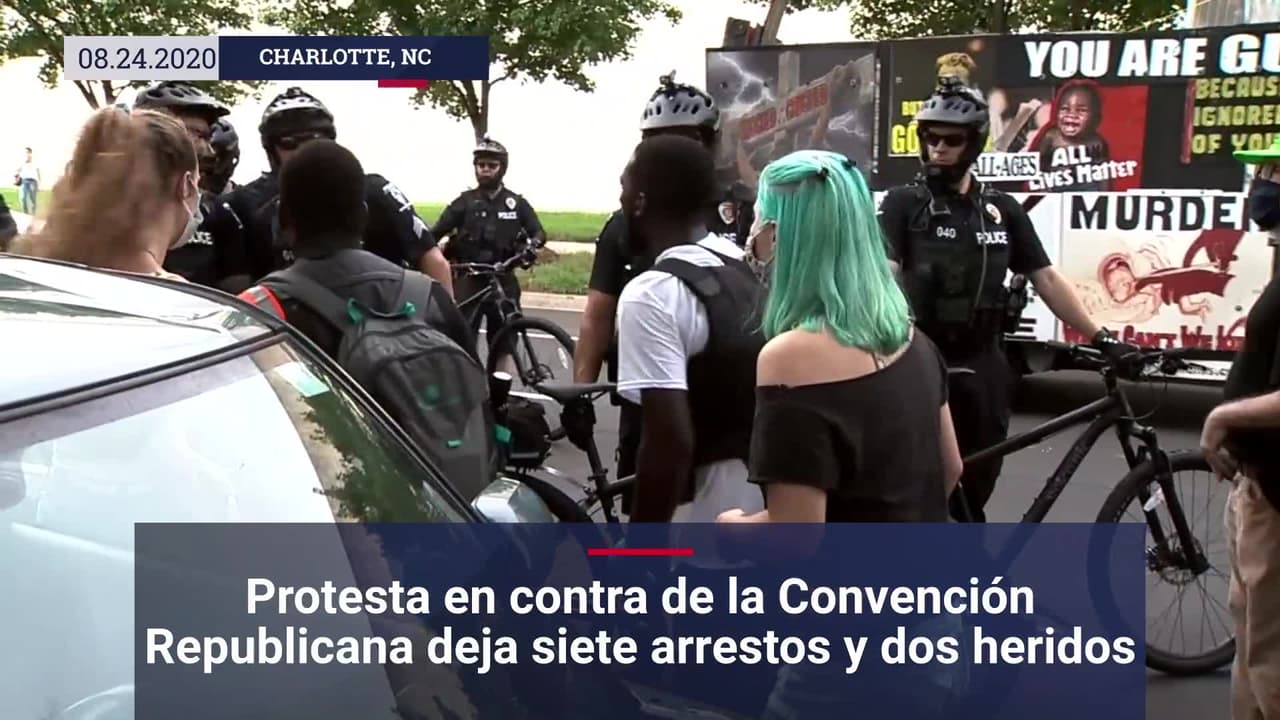 Al menos siete personas fueron arrestadas y otras dos hospitalizadas durante las protestas en Charlotte, Carolina del Norte, luego de la Convención Nacional Republicana el 24 de agosto por la noche, según un informe del Departamento de Policía.