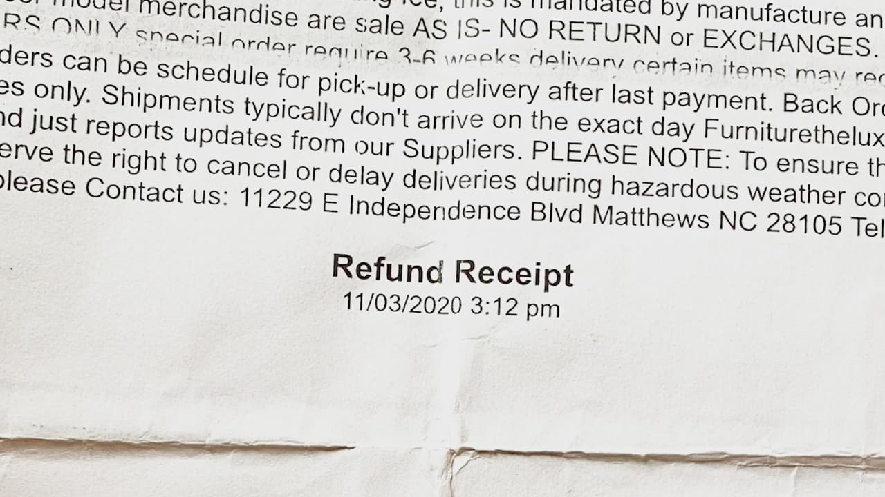 Silvia Mena sigue esperando por unos muebles que compró en agosto de 2020. La mueblería con sede en Charlotte, Carolina del Norte, alega que han sido "víctimas de las circunstancias".