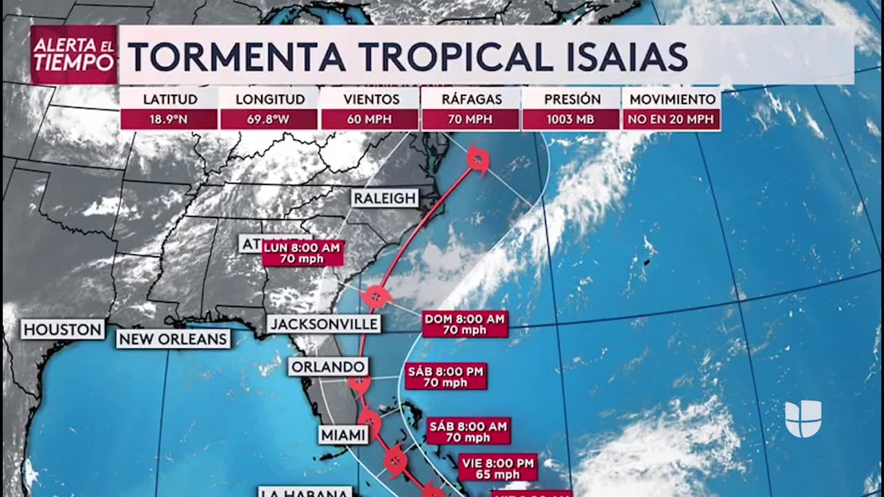 Las porciones costeras de Carolina del Norte podrían registrar vientos de hasta 70 mph. El impacto de la tormenta tropical Isaías se extendería hasta la mañana del lunes.