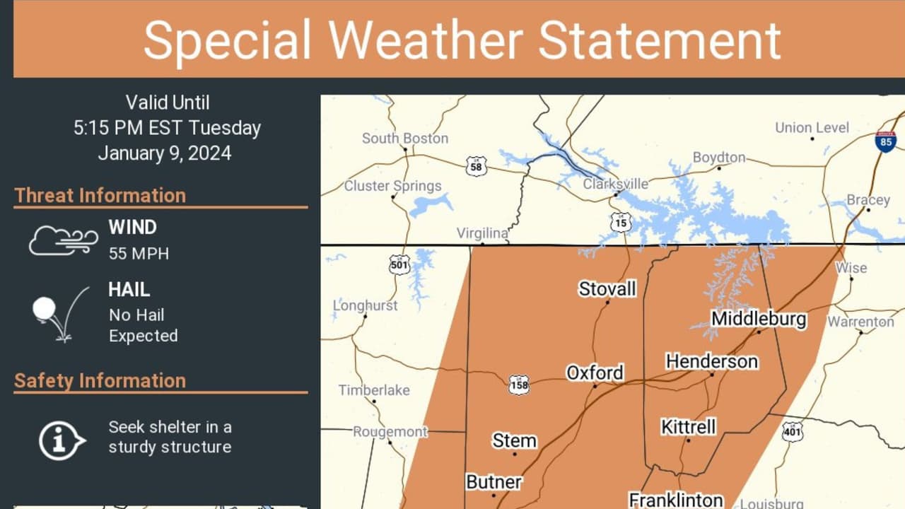 Se ha emitido una declaración meteorológica especial para Henderson NC, Oxford NC y Butner NC hasta las 5:15 p.m. EST.
