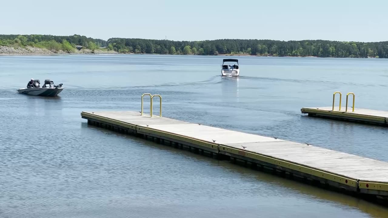 El sargento Nathaniel Green, superintendente del Distrito Sur de Parques de Carolina del Norte, indica que la primera recomendación es usar un chaleco salvavidas y muestra la forma correcta de hacerlo.