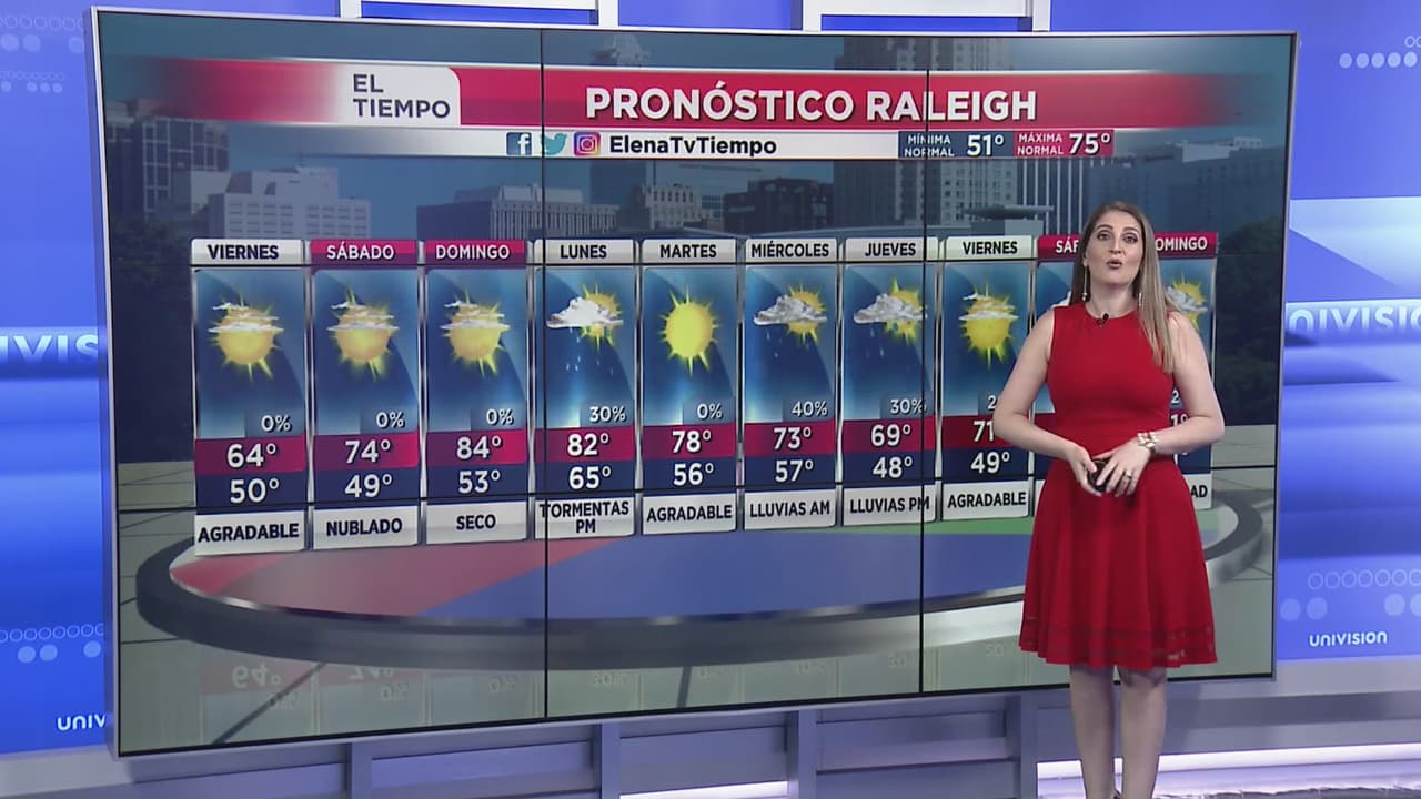 Las máximas estarán en los 64 grados en Carolina del Norte, con condiciones secas y un cielo soleado. Se espera que las temperaturas alcancen los 84 grados el fin de semana.