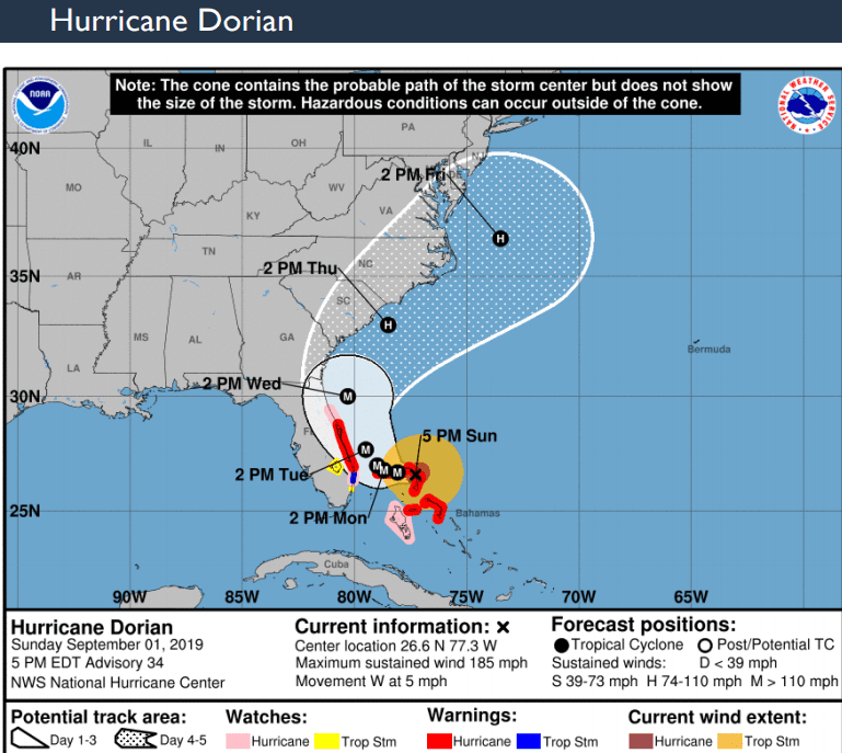 Los funcionarios estatales de emergencia se estaban preparando para Dorian desde el sábado al coordinarse con FEMA, los estados vecinos y los gobiernos locales para que el personal y el equipo estén listos para responder.