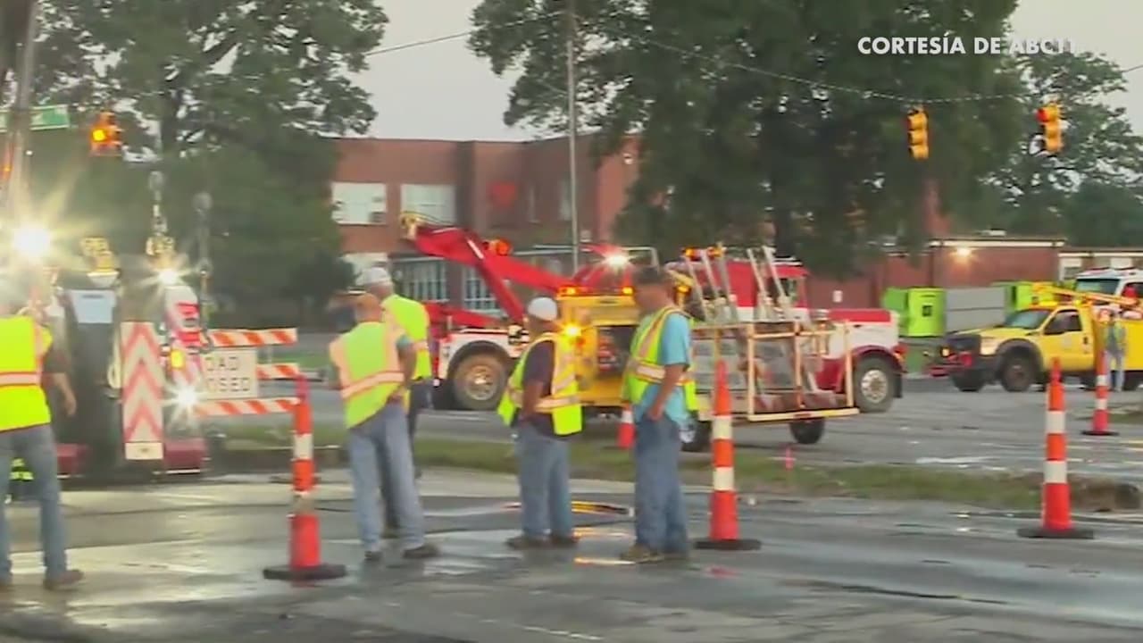 La fuerte lluvia en Strickland Bridge y 71st en Fayetteville provocó que se abriera un gran socavón que terminó tragándose un gran camión. Además, el sumidero también ocasionó que un policía resultara herido.