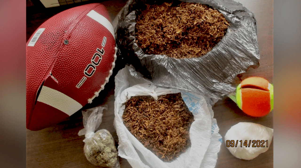 Una pelota de fútbol americano fue vista en un lugar extraño. Al revisar la pelota, los oficiales penitenciarios hallaron tabaco, marihuana y metanfetamina.