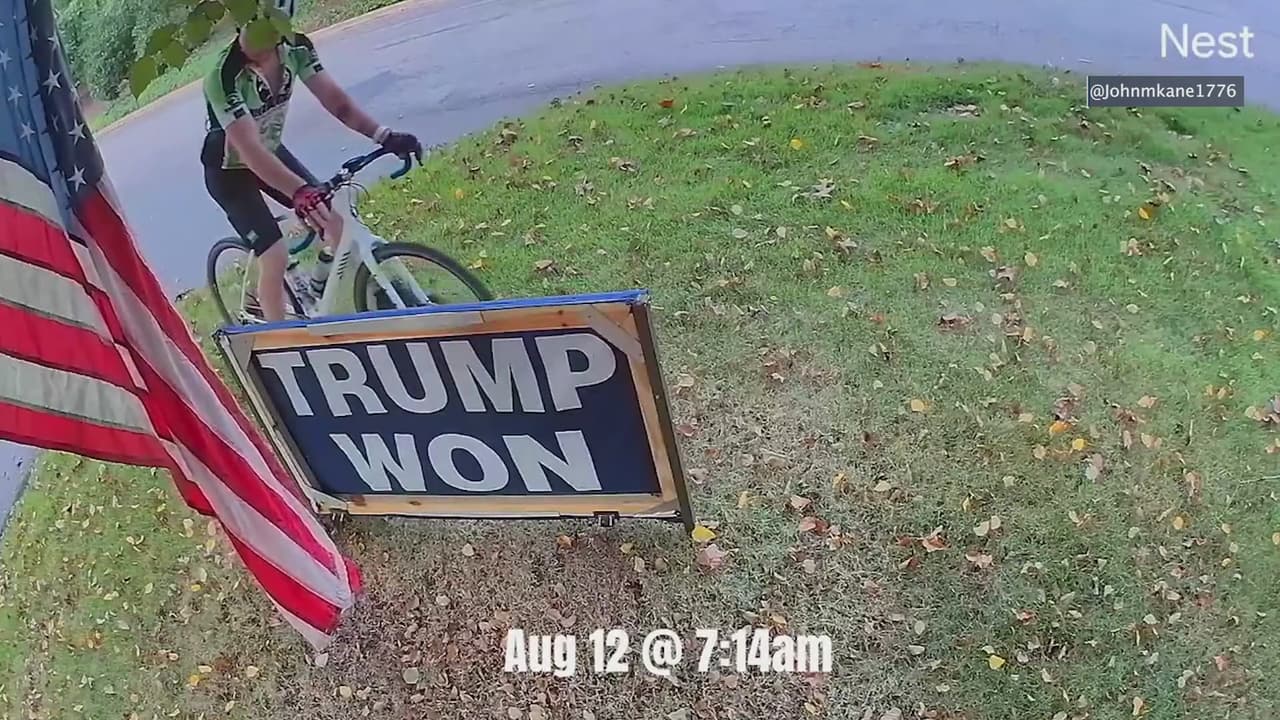 La policía de Raleigh acusó a un hombre captado por una cámara prendiendo fuego a un cartel que expresaba su apoyo al expresidente Donald Trump. James Dennis White está acusado de dos cargos de daños a bienes inmuebles.