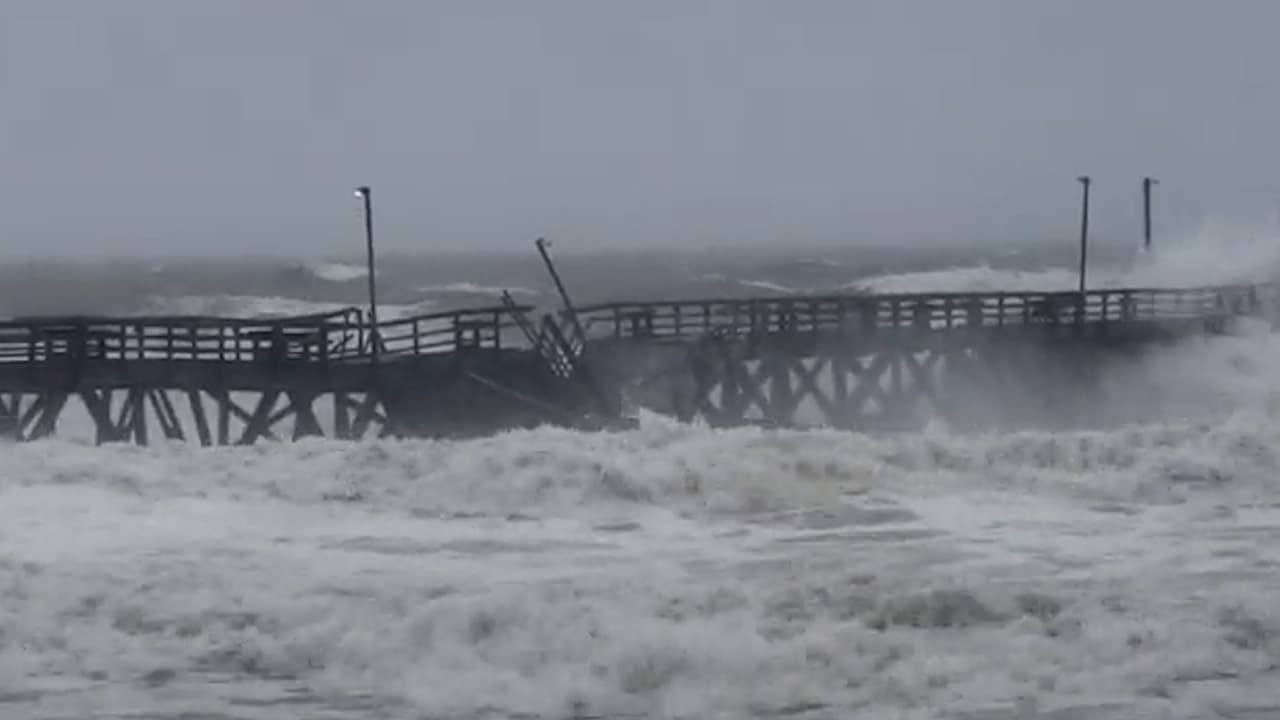 UnivisionUn video muestra el derrumbe del muelle de pesca de Cherry Grove en North Myrtle Beach.