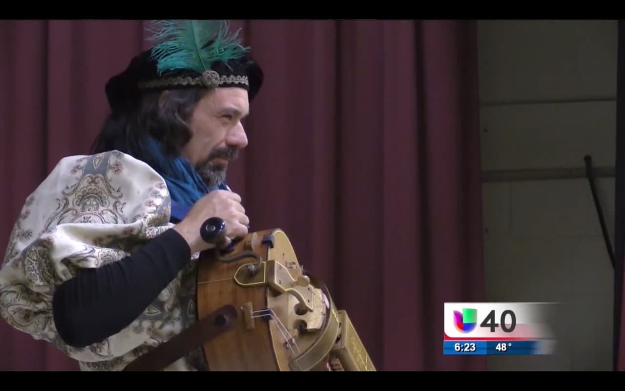 Crispín D’olot es un juglar moderno que va viajando por las escuelas enseñando sobre el origen de la lengua y la cultura española.
