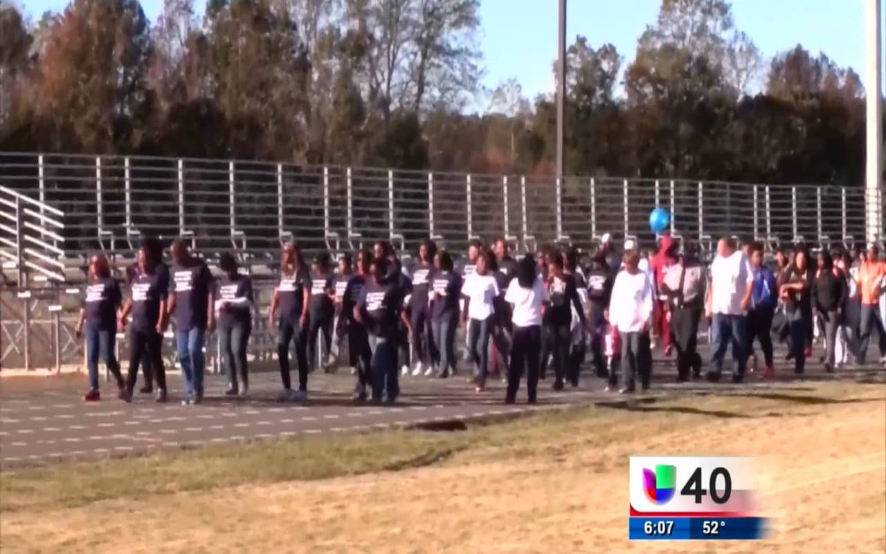 Un grupo de personas organizó una caminata en memoria de dos estudiantes universitarios que murieron a balazos en una fiesta el pasado mes de octubre.
