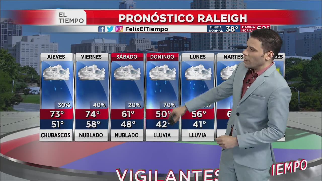 Pronostican un mínimo riesgo de tiempo severo para el viernes. Las tormentas podrían incrementarse a partir de las 11 p.m., específicamente en localidades como Greensboro, Chapel Hill y Roxboro.
