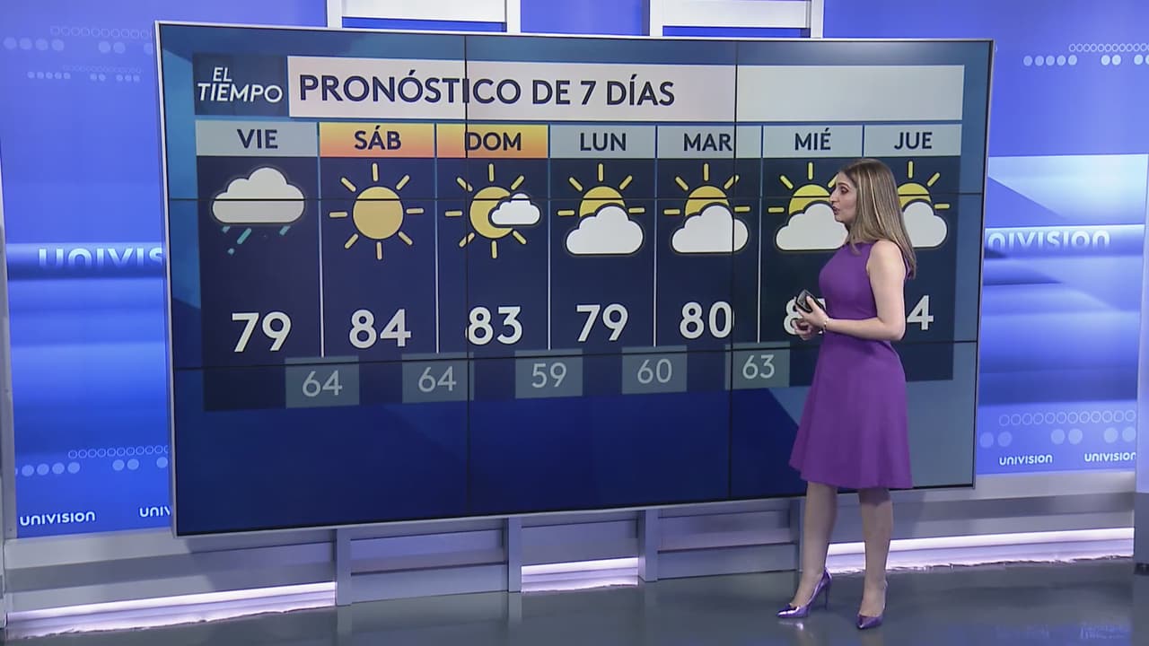 Las lluvias comenzarán a alejarse a partir de las 6 a.m. del viernes, y la temperatura máxima estará alrededor de los 80 grados. Se esperan excelentes condiciones el fin de semana.