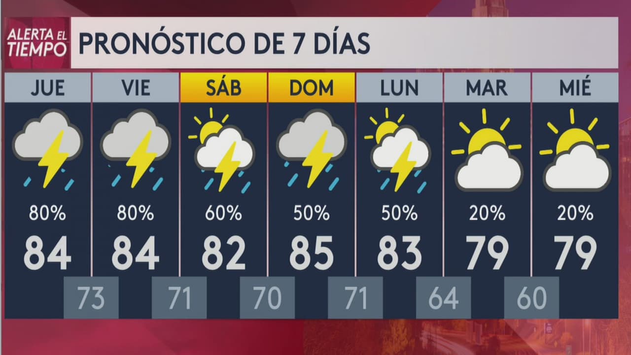 Más lluvias vienen en camino. Se espera que las precipitaciones se extiendan hasta el próximo lunes. Las temperaturas oscilarán este jueves entre los 70 y los 84 grados.