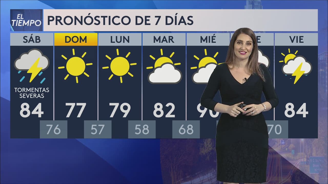 Las temperaturas máximas llegarán a los 85 grados, con lluvias y tormentas desplazándose el sábado. Habrá un día soleado el domingo con máximas en los 77 grados.