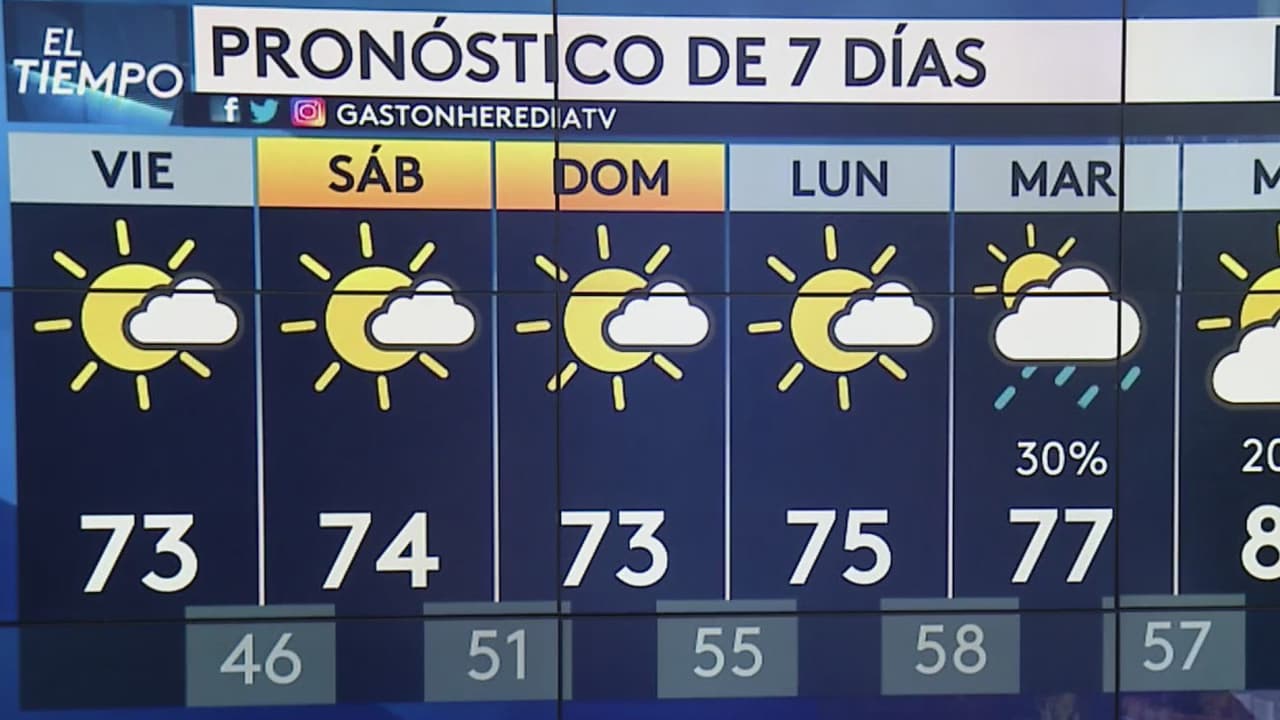 Las temperaturas máximas llegarán a los 73 grados, con condiciones parcialmente nubladas y probabilidad de precipitaciones entre 4 y 7 pm.