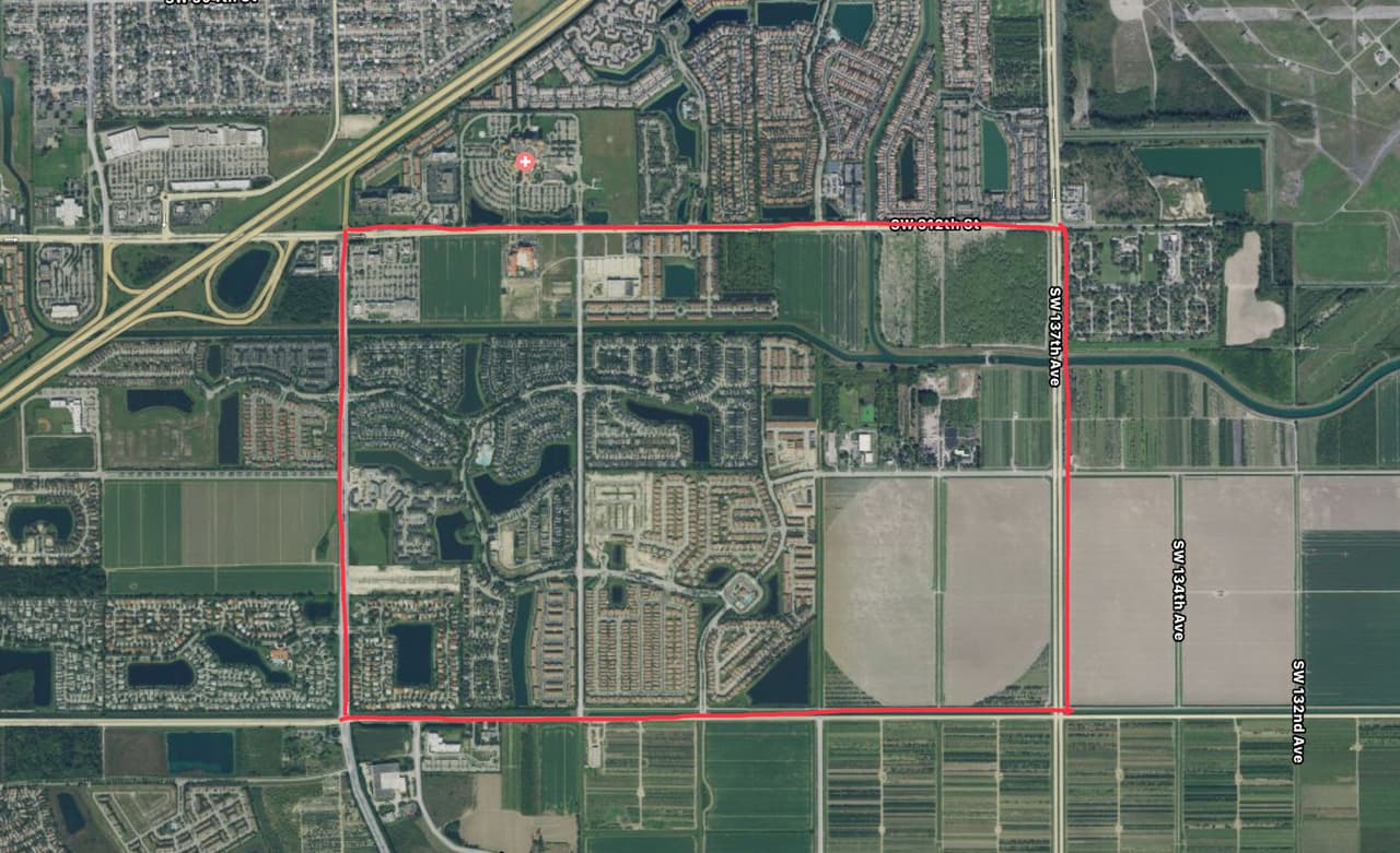 El área de máyor alerta está entre la calle 312 del suroeste (Campell Drive) siguiendo al sur hasta la calle 328 del suroeste, y la avenida 152 del suroeste siguiendo al este hasta la avenida 137 del suroeste.