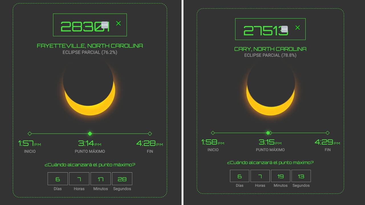 En Carolina del Norte, se anticipa que el eclipse sea parcial y qué tan cubierto estará el sol depende de la ciudad en donde te encuentres. Te decimos cómo saber las horas clave en tu ciudad y los eventos alrededor del triángulo.