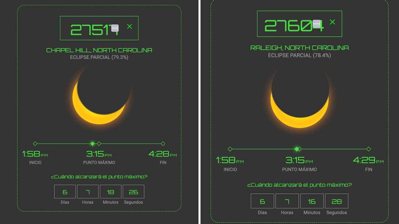 Para conocer qué tan oscuro estará donde vives, puedes utilizar esta herramienta de Univision en donde lo único que debes hacer es colocar tu código postal para conocer a qué hora comenzará a oscurecerse, a qué hora será más obscuro y cuándo regresará todo a la normalidad.