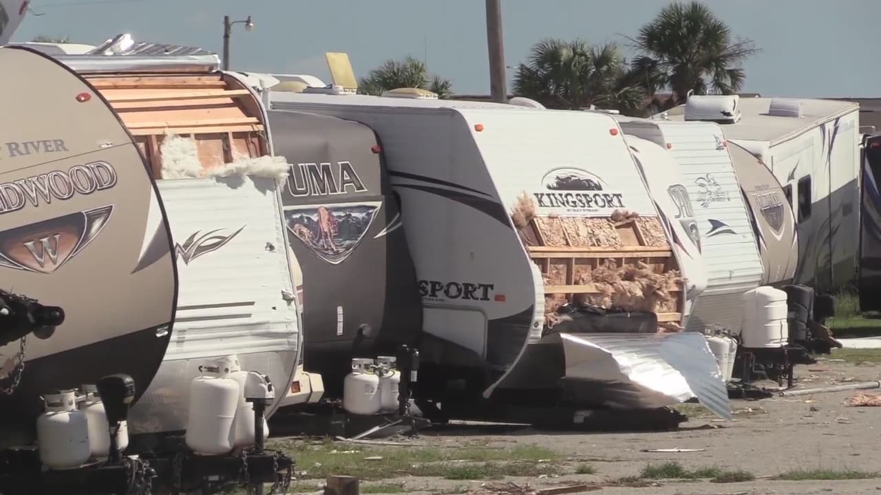 Los fuertes vientos dejaron destrucción de cientos de casas móviles en Emerald Isle