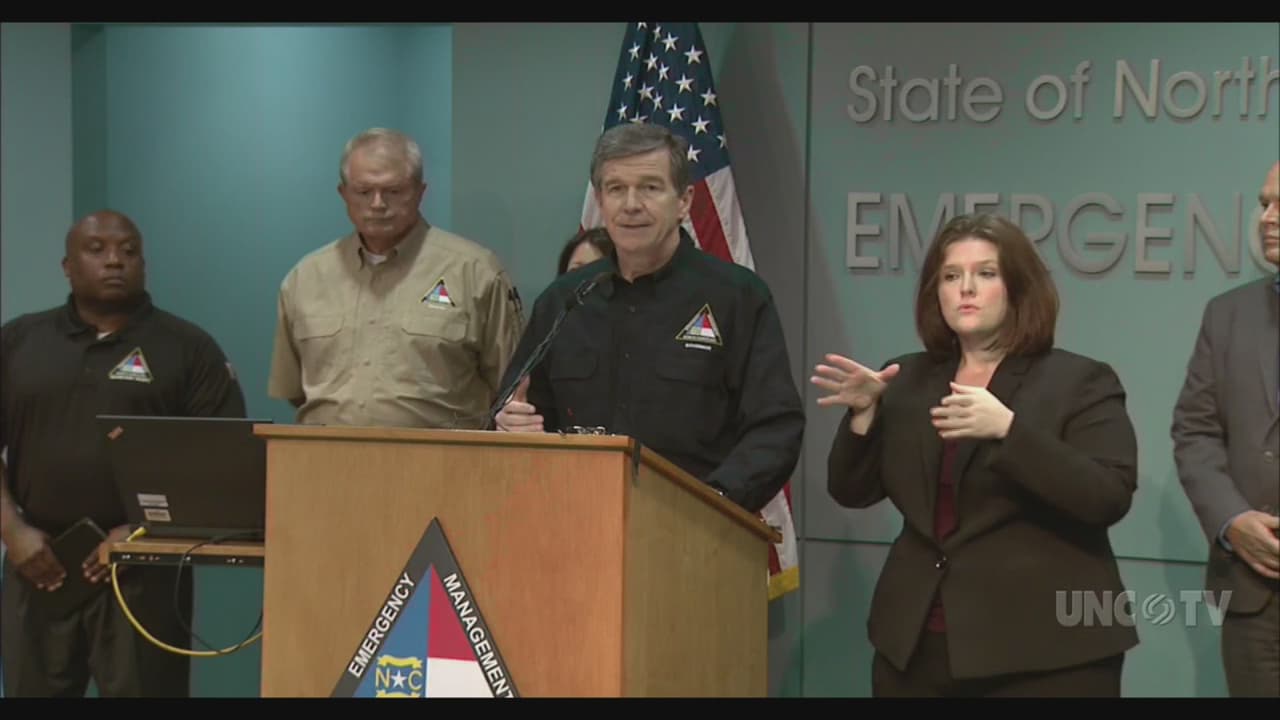 El gobernador informó durante una conferencia de prensa de los daños registrados hasta el momento por el huracán Florence y pide a los residentes mantenerse resguardados.