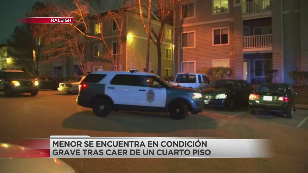 Un menor de dos años presuntamente cayó desde el cuarto piso de un complejo de apartamentos en Raleigh, las autoridades investigan el hecho.