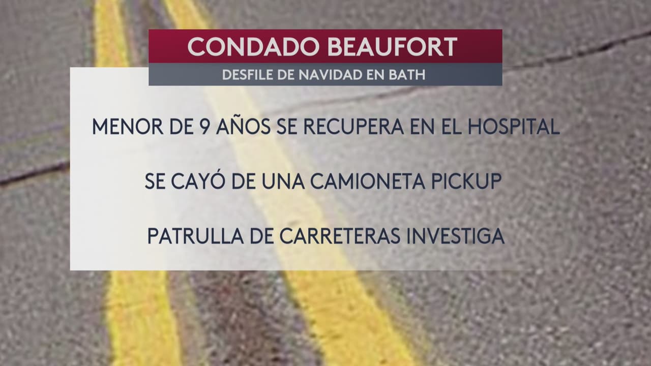 El accidente ocurrió en el Desfile de Navidad de Bath, a unas 123 millas al este de Raleigh. Un niño de 9 años que participaba en el evento se cayó de una 'pick up' y fue atropellado por el remolque conectado a la camioneta.